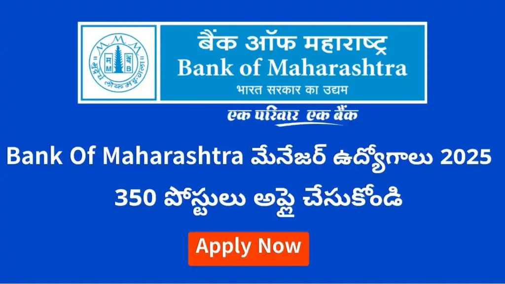 Telanganapatrika (September 10): Bank of Maharashtra Manager Recruitment 2025:బ్యాంక్ ఆఫ్ మహారాష్ట్రలో మేనేజర్ ఉద్యోగాలకు నోటిఫికేషన్ 2025! 350 ఖాళీలు, ఐటీ, లీగల్, రిస్క్ మేనేజ్మెంట్ అనుభవం ఉన్నవారికి అవకాశం. ఇప్పుడే అప్లై చేయండి.