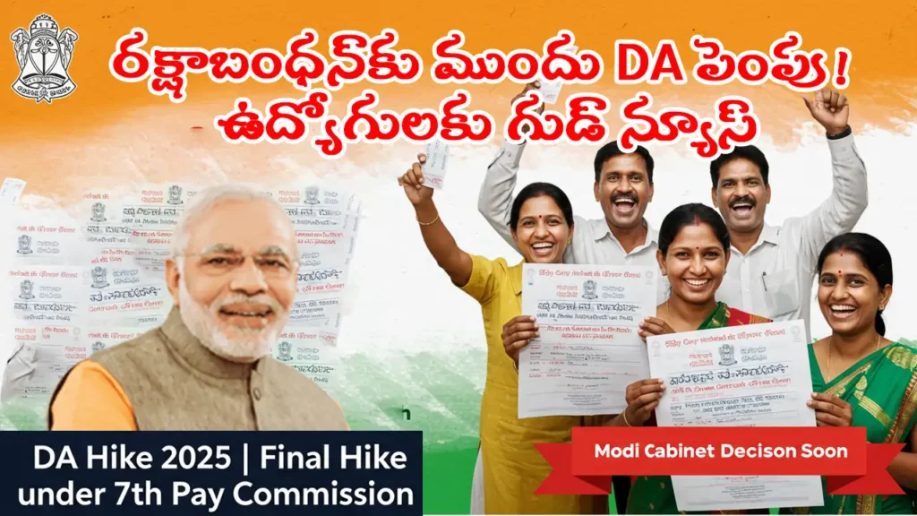 Telanganapatrika (July 31) : DA hike news 2025, DA (డియర్నెస్ అలవెన్స్) పెంపు కోసం కేంద్ర ప్రభుత్వ ఉద్యోగులు మరియు పెన్షనర్లు ఎంతో కాలంగా ఎదురుచూస్తున్నారు. రాబోయే రక్షాబంధన్ పండుగకు ముందు దీనిపై ప్రభుత్వం నిర్ణయం తీసుకునే అవకాశం ఉంది. ఈ పెంపు 2025 జూలై నుంచే అమల్లోకి రావొచ్చని అంచనా.