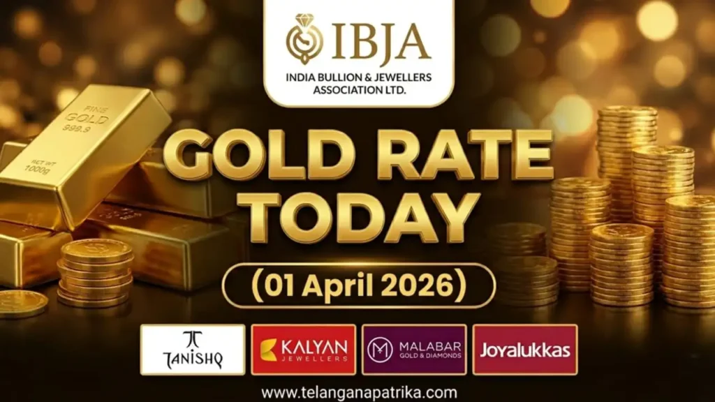 Telangana Patrika (April 1): Gold Rate Today – ఏప్రిల్ 1, 2026న 24K బంగారం 10 గ్రాముల ధర రూ.1,51,572. ట్రంప్ శాంతి సంకేతాలతో ఊపిరి పీల్చుకుంది!