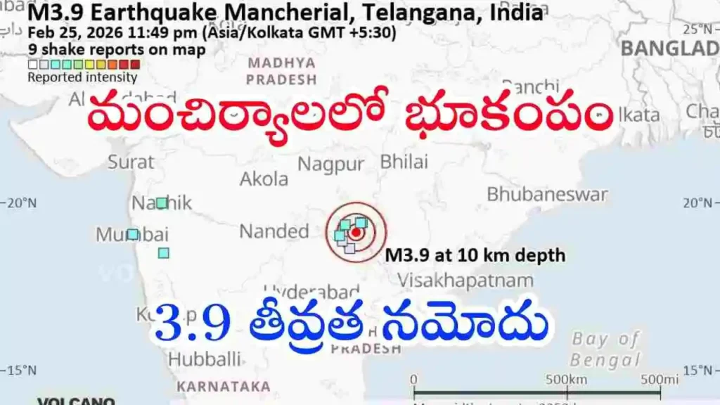Mancherial Earthquake 3.9 Magnitude : తెలంగాణలో భూకంపం… మంచిర్యాలలో 3.9 తీవ్రత నమోదు..