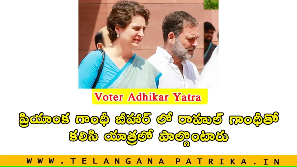 Telanganapatrika (August 26): Adhikar yatra bihar కాంగ్రెస్ జనరల్ సెక్రటరీ ప్రియాంక గాంధీ వాద్రా సోమవారం బీహార్ లోని సుపాయిల్ లో పార్లమెంట్ ప్రతిపక్ష నేత రాహుల్ గాంధీ నిర్వహిస్తున్న ఓటర్ అధికార్ యాత్రలో చేరనున్నారు.
