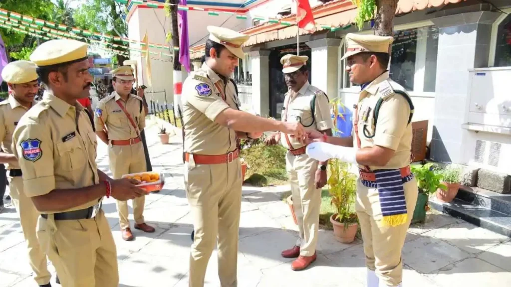 పతాకావిష్కరణ అనంతరం గౌరవ వందనాలు స్వీకరించి, కార్యక్రమంలో పాల్గొన్న పోలీసు ఉన్నతాధికారులు, మినిస్ట్రీరియల్ విభాగం అధికారులు మరియు సిబ్బందికి స్వీట్లను పంపిణీ చేశారు.