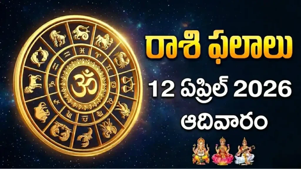 నేడు Telugu Panchangam April 12 2026 ప్రకారం శ్రీ పరాభవ నామ సంవత్సరం చైత్ర మాసం బహుళ పక్షంలో ఆదివారం దశమి తిథితో రోజు ప్రారంభమవుతోంది. నక్షత్రం శ్రవణం ఉదయం 11.48 వరకు, యోగం సాధ్యం మధ్యాహ్నం 3.12 వరకు ఉంది. సూర్యరాశి మీనంలో మరియు చంద్రరాశి మకరంలో సంచరిస్తున్నాయి. రాహుకాలం సాయంత్రం 4.30 నుండి 6.00 వరకు ఉన్నందున ఆ సమయంలో శుభకార్యాలు నివారించాలి. వర్జ్యం మధ్యాహ్నం 3.58 నుండి 5.38 వరకు ఉంది — జాగ్రత్తగా ఉండాలి. 12 రాశులకు నేటి సంపూర్ణ రాశిఫలాలు క్రింద చదవండి.