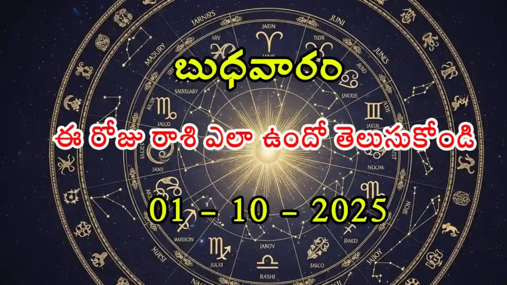 ఈ రోజు బుధవారం, 01-10-2025. Today Rasi Phalalu ప్రకారం, గ్రహచారం మీ జీవితంలోని వివిధ అంశాలపై ప్రభావం చూపుతోంది. ఉద్యోగం, వ్యాపారం, ఆర్థిక స్థితి, కుటుంబ సంబంధాలు మరియు ఆరోగ్యంపై ఈ రోజు ఏమి చెబుతోందో మీ రాశి ప్రకారం ఒక్కొక్కటిగా తెలుసుకుందాం.
